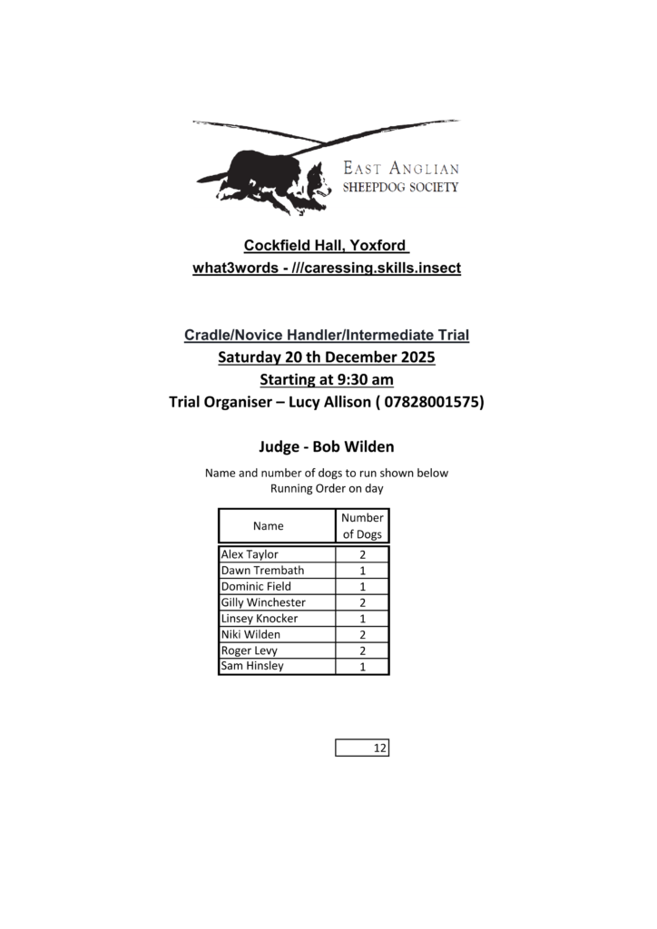 Heveningham Cradle/Novice Handler/Intermediate Trial List Of Runners